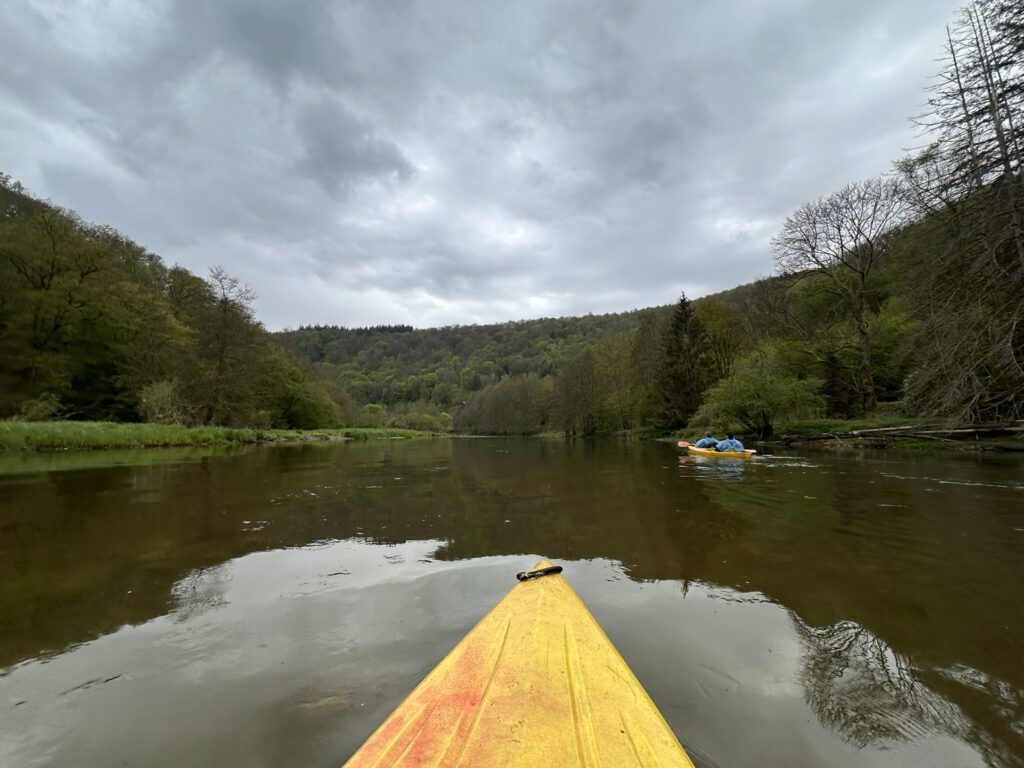 Vandaag anders dan anders… Na ruim 70 kilometer gelopen te hebben in 2 dagen hadden de voeten van ons jongste broertje geen zin meer. Het hielp niet dat hij behoorlijk wat blaren had door natte voeten/sokken, en daarmee hield voor hem het avontuur op. We hadden daarom besloten dat wij drieën de kortste route naar de auto zouden nemen en hem dan zouden oppikken. Echter, toen we na 5 kilometer een kano-verhuurder tegenkwamen kwamen we op het idee de kano te pakken! De eigenaar van de camping was zo vriendelijk de achterblijver met de auto naar het opstartpunt te brengen, en vanaf daar hebben we Semois gevolgd volgens plan, maar dan op het water. We hebben zo’n 2u in de kano gezeten om 11km af te leggen. Helaas wel wat regen getroffen onderweg, maar dat mocht de pret niet drukken. Al bij al een hele leuke ervaring!